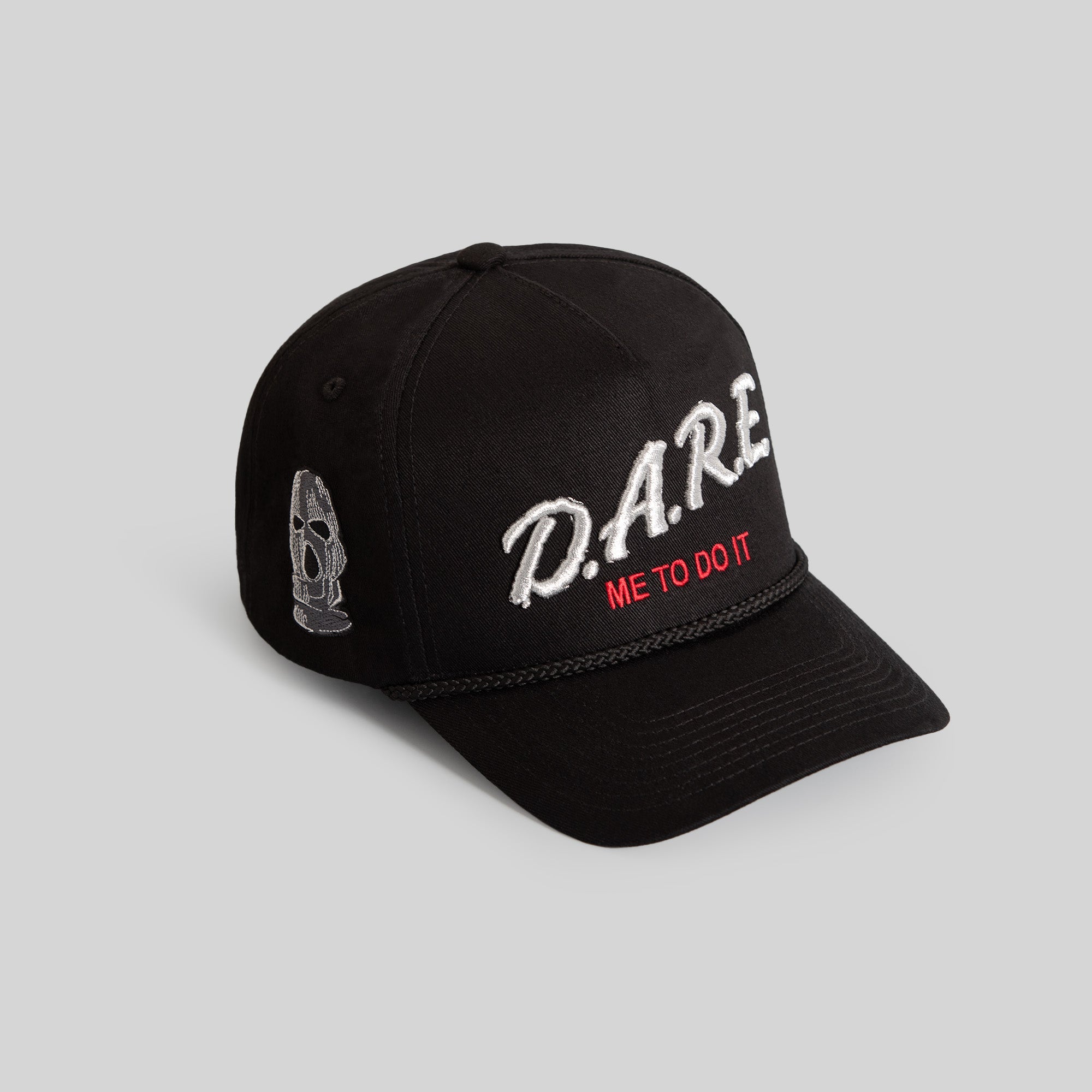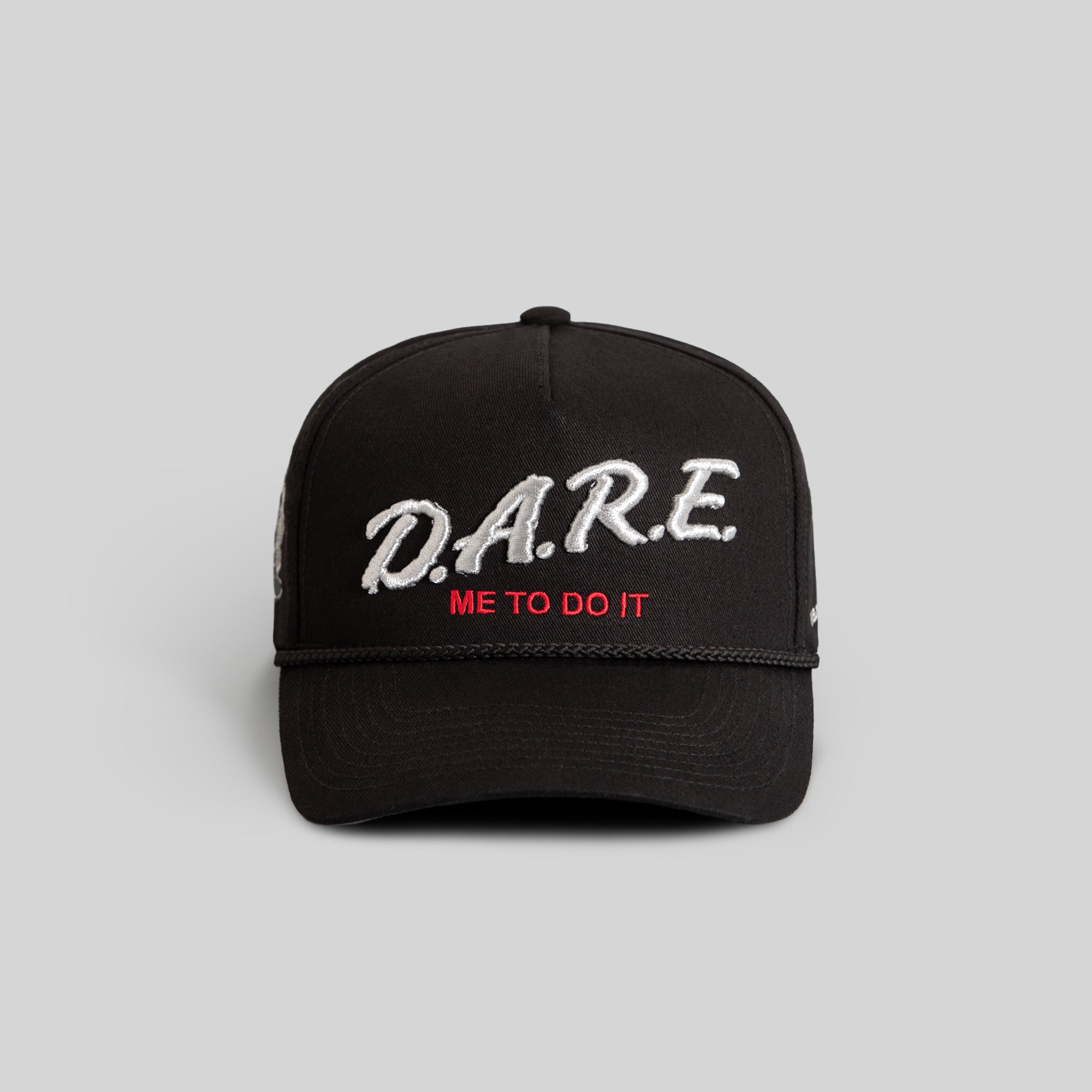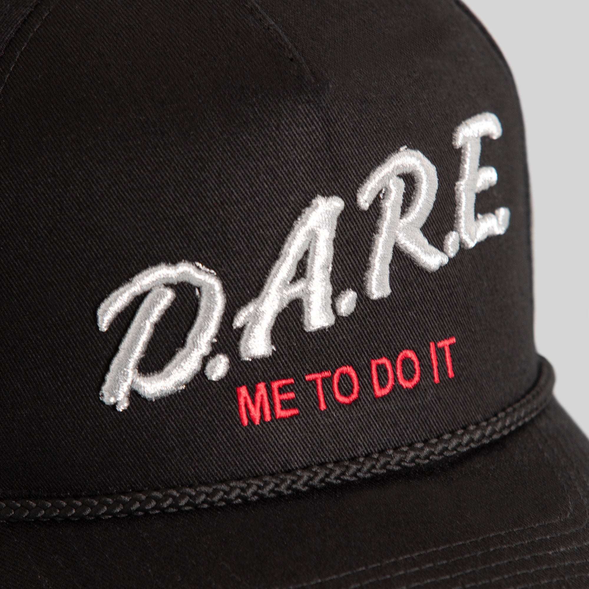 • Dare Me To Do It logo embroidered in Light Silver, and Varsity Red