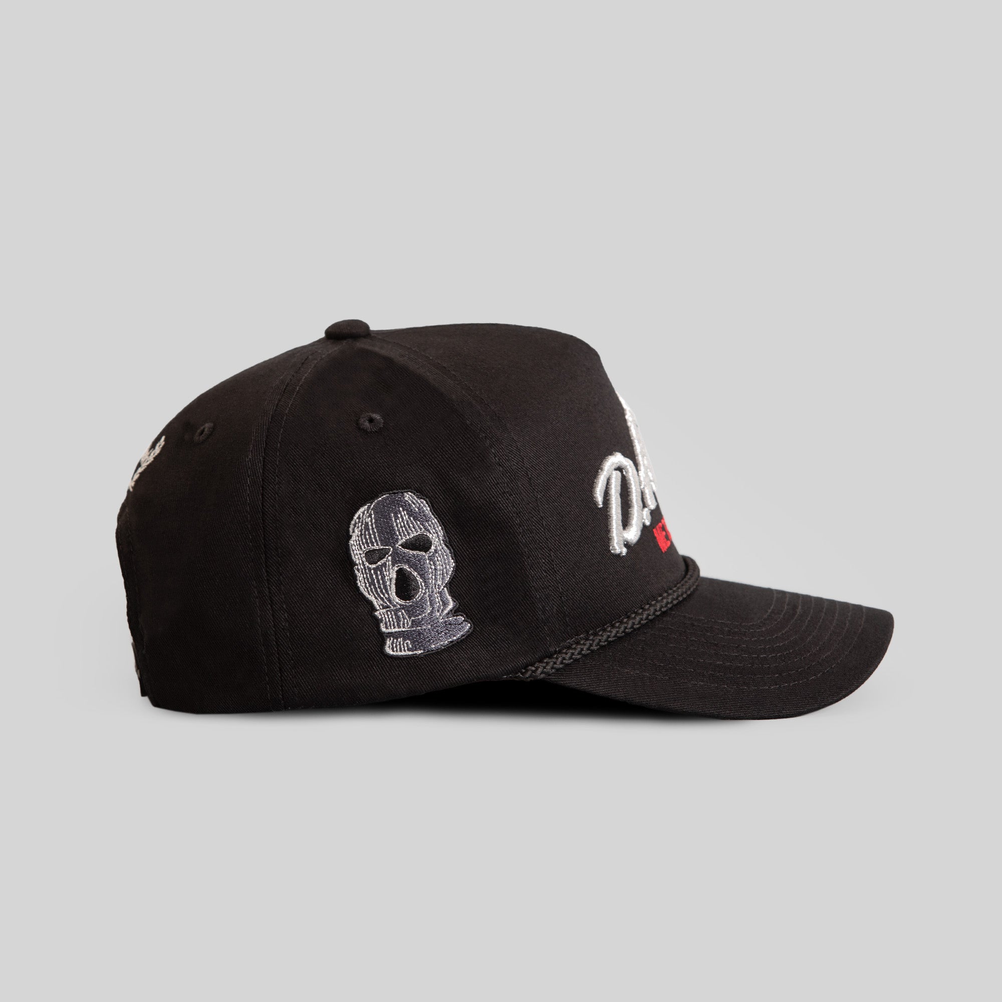 • Side and Back Logos embroidered in Light Silver, Black, and Charcoal