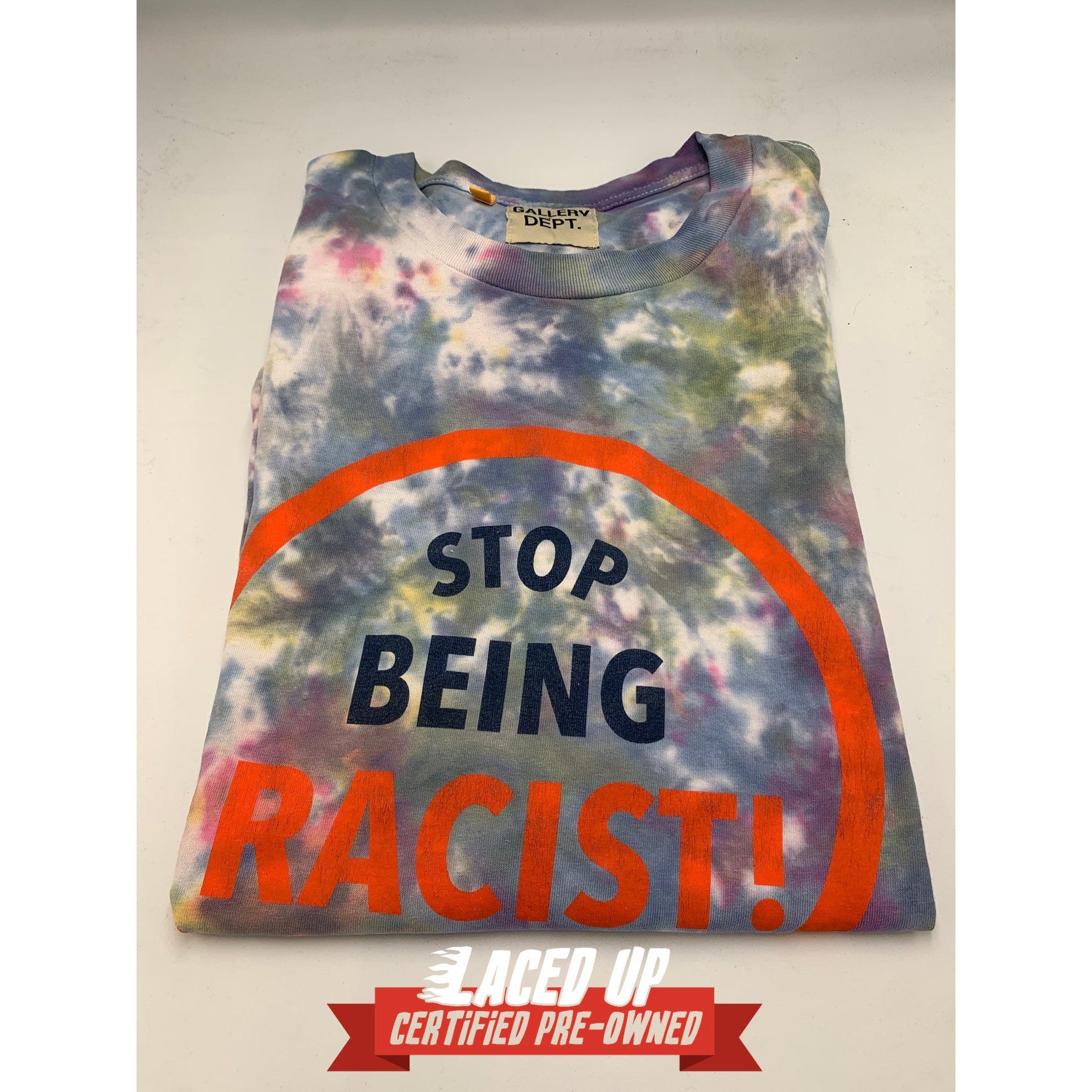 PRE OWNED Gallery Dept “stop being racist” tie dye tee (marble)